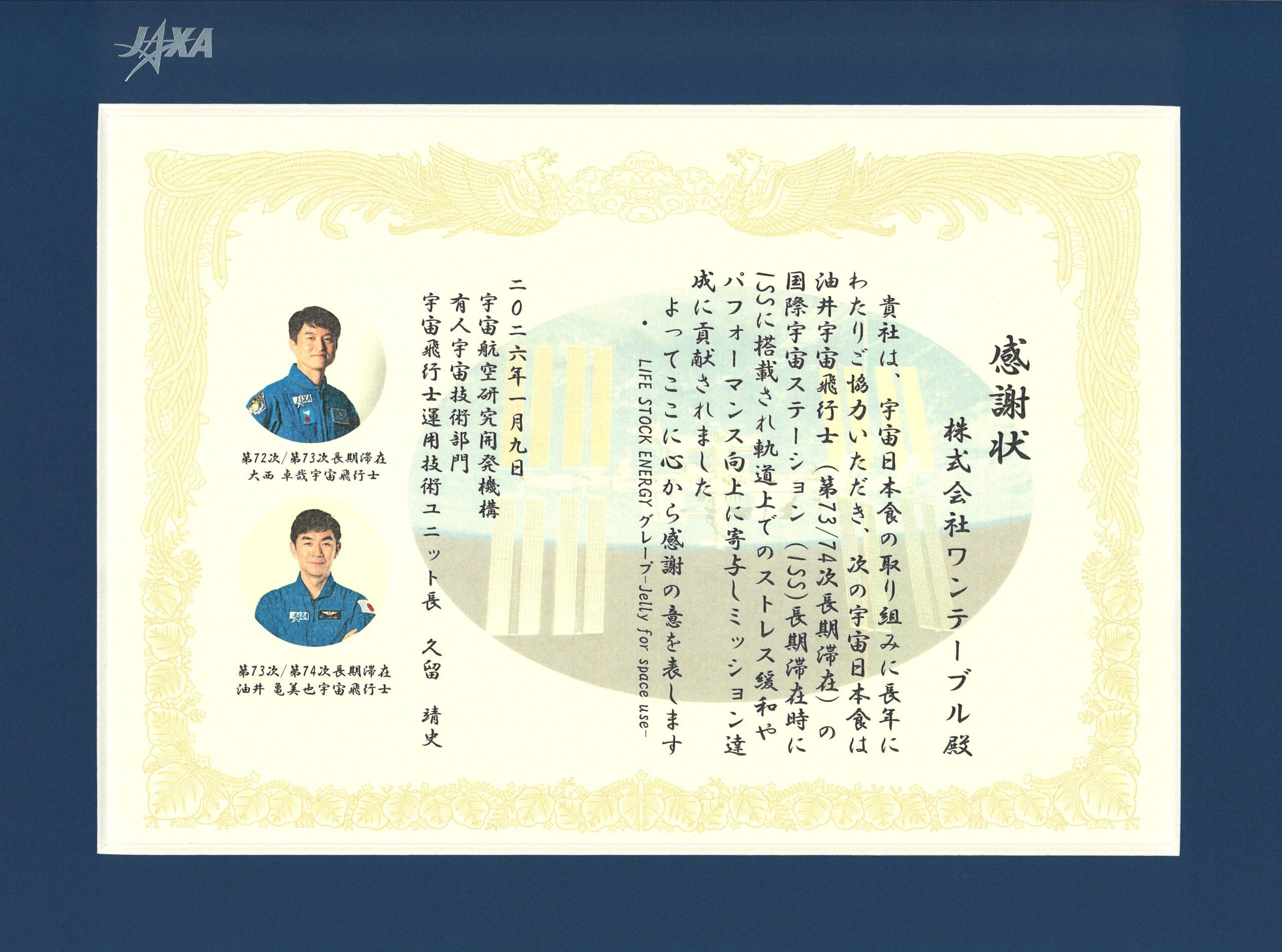 宇宙日本食「LIFE STOCK ENERGY グレープ-Jelly for space use-」国際宇宙ステーション(ISS)に2回目の搭載決定